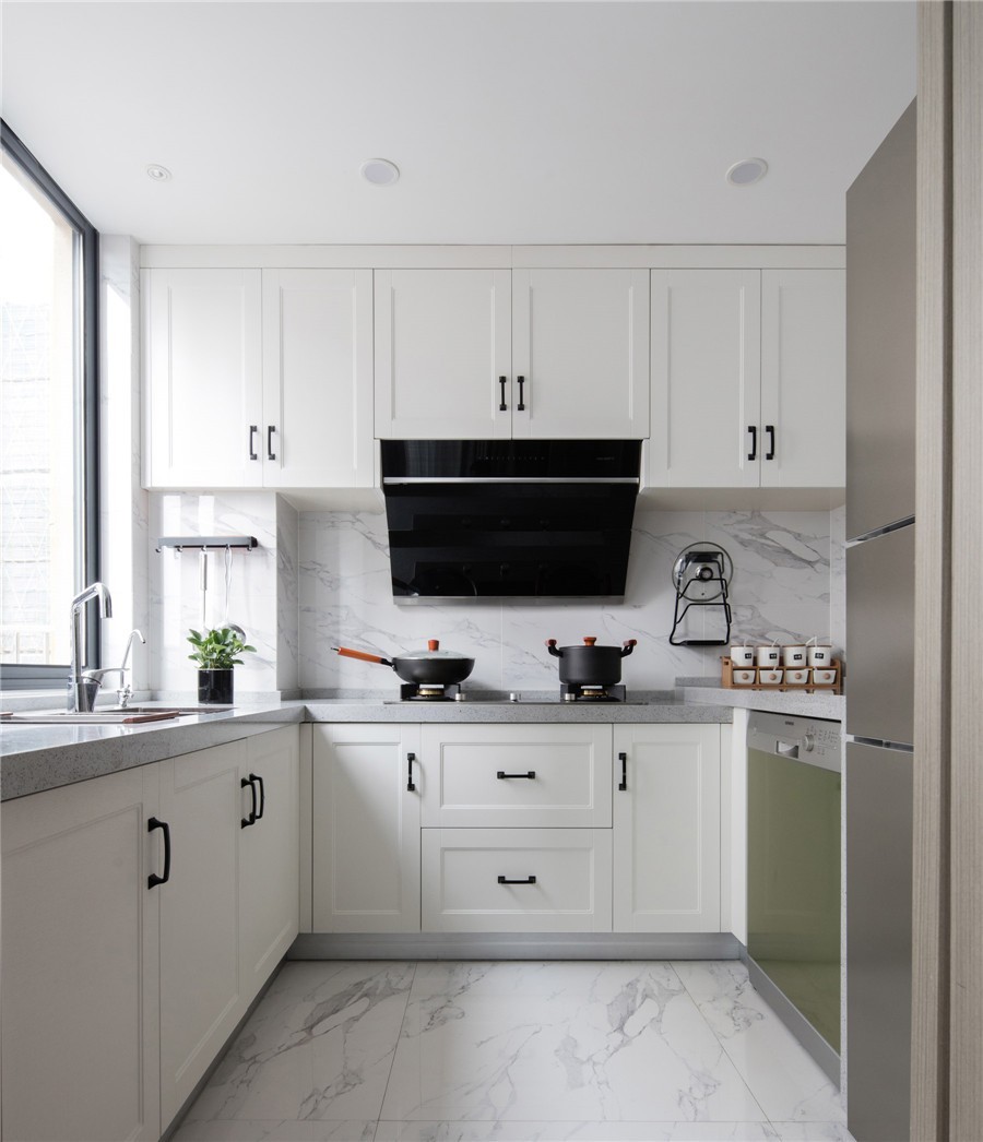 廚房的門做了弱化設(shè)計(jì) 一推進(jìn)去即是 視野開(kāi)闊的開(kāi)放式廚房