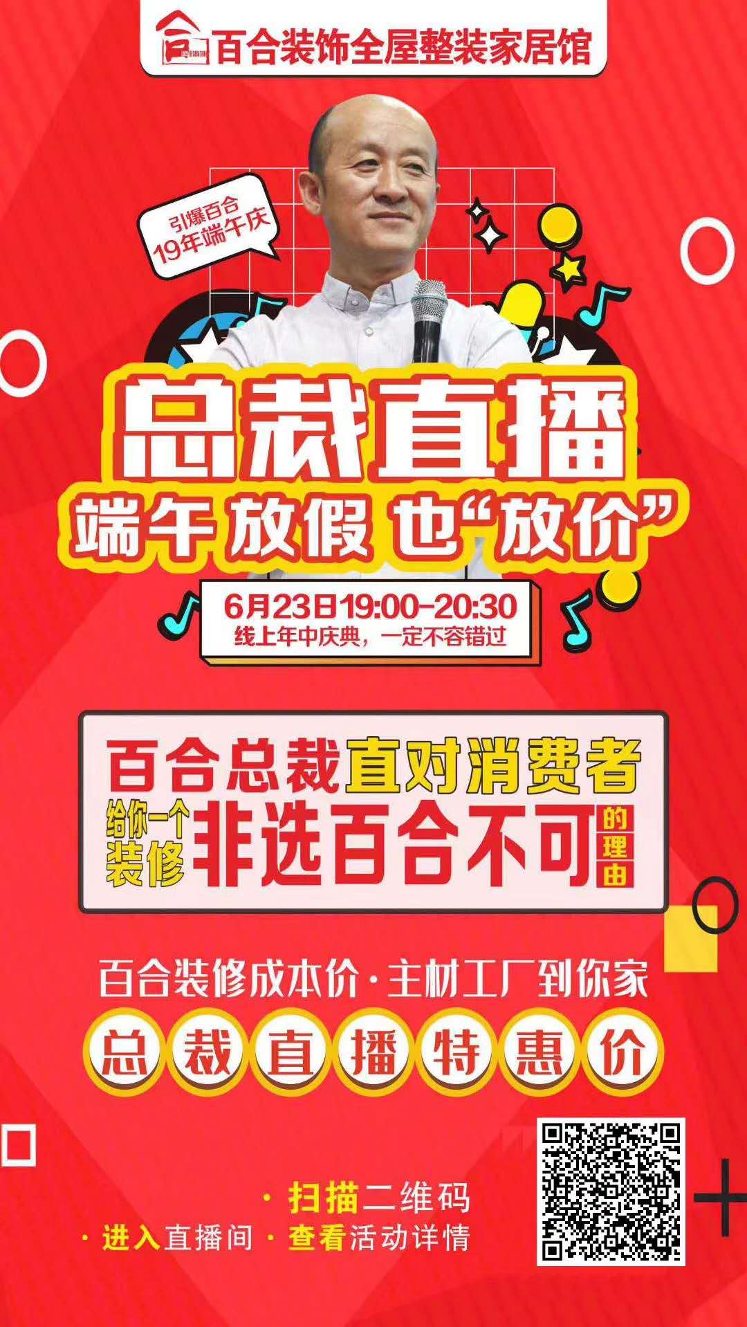 百合裝飾總裁直播啦!端午放假也“放價”